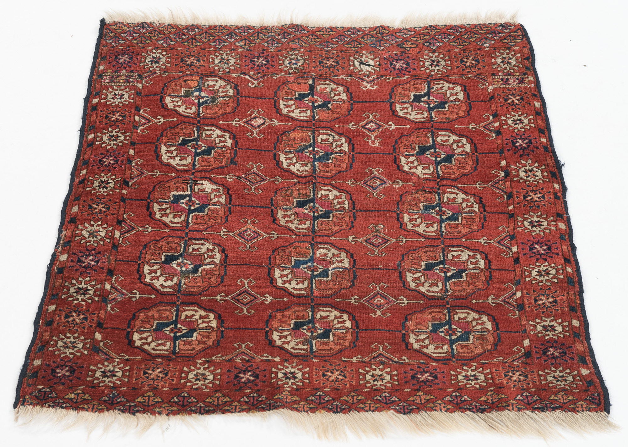 The story of our Tekke Crimson Carpets begins in the 17th century when Tekke tribes settled near the Murgab River. Matriarch weavers guarded octagonal göl motifs that symbolized protection, prosperity, and unity.